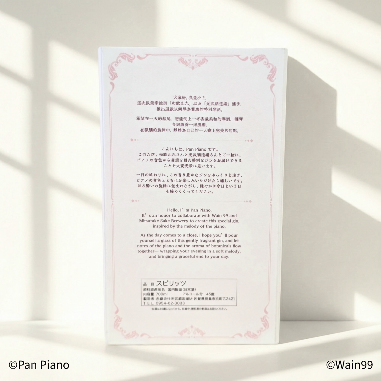 The Pan Piano × Wain 99 collaboration gin aims to blend Pan Piano’s musical charm, the vibrant energy of ACG culture, and the spirit of Japanese craftsmanship, resulting in a bottle that embodies both creativity and refined flavor.